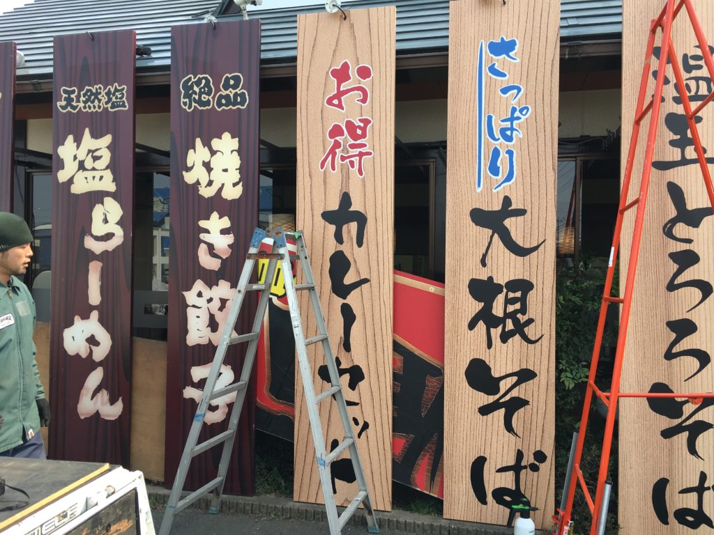 お蕎麦屋さんの店舗改修サイン工事を行いました。