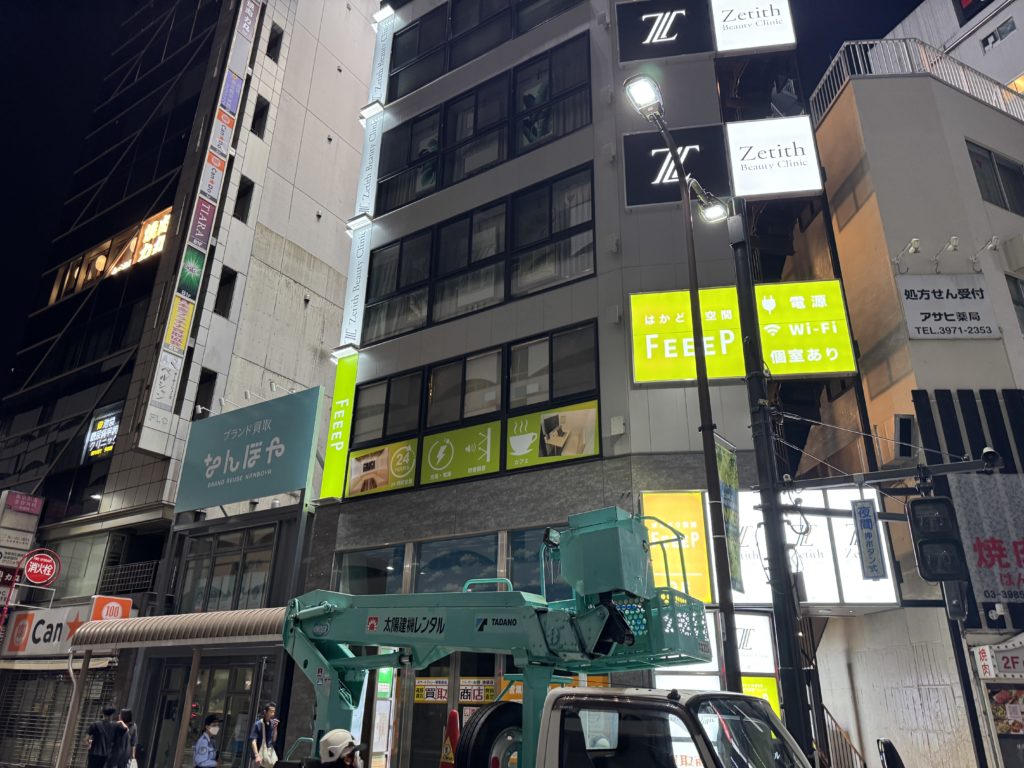 高所作業車にて夜間作業にて対応致しました。