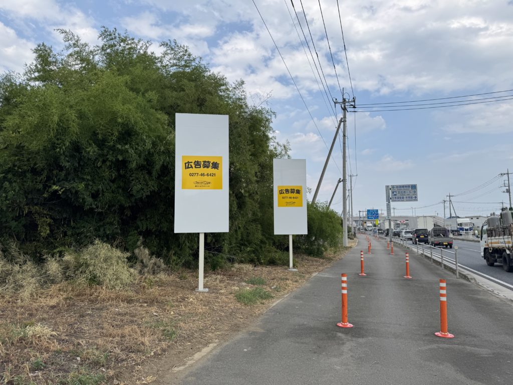 国道50号沿い、笠懸鹿の信号付近に設置している自立式案内看板について、広告掲載していただける企業様を募集しています。
