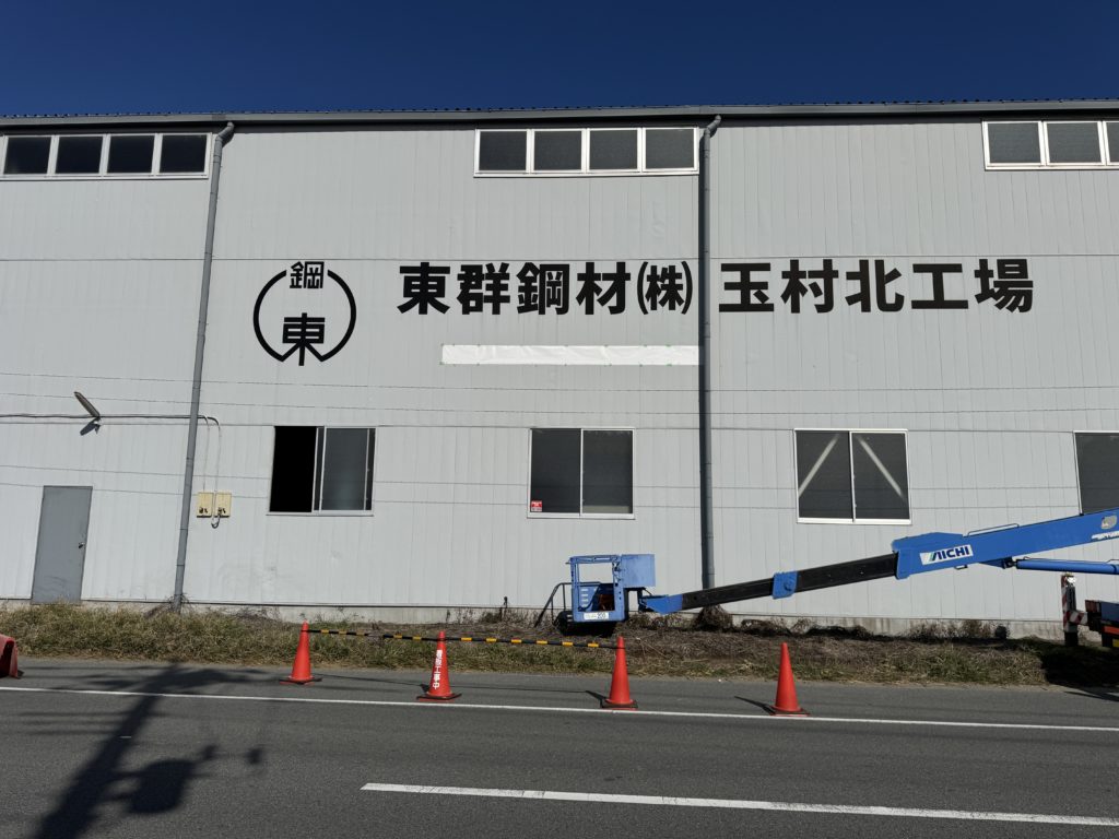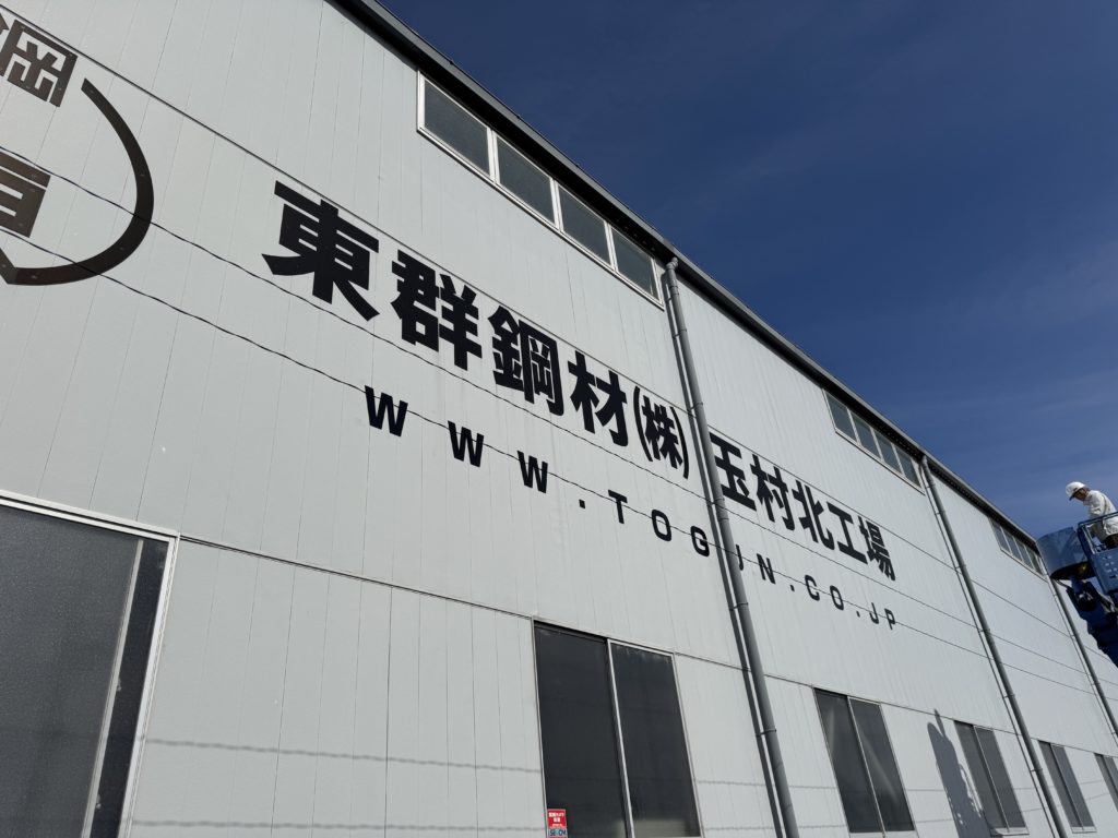 群馬県玉村町にて工場の壁面看板の施工を行いました。