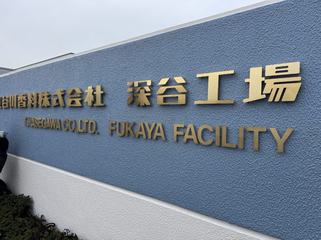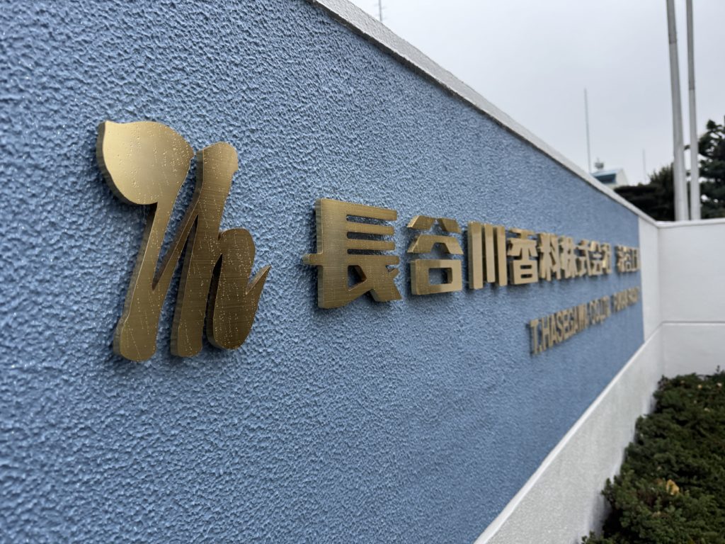 長谷川香料株式会社 深谷工場様にて、壁面の社名看板(チャンネル文字)の施工を行いました。